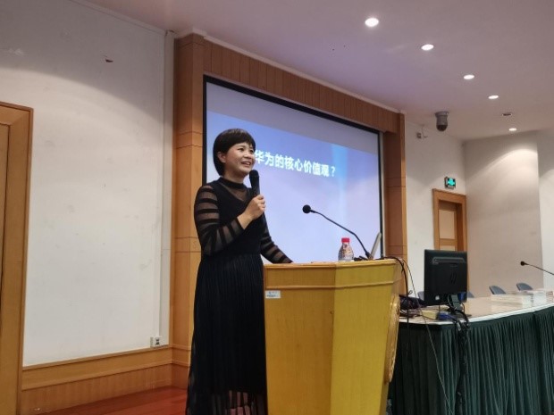 为拓宽公司员工视野,了解企业运营管理文化及对人才的需求,2019年4月23日晚6点,华为运营商BG全球销售部招聘调配部主管杨峻老师受邀在J103为公司员工开展生涯讲座,与大家一起分享华为公司的成长故事,讲述她的职场经历并阐述企业的人才观。