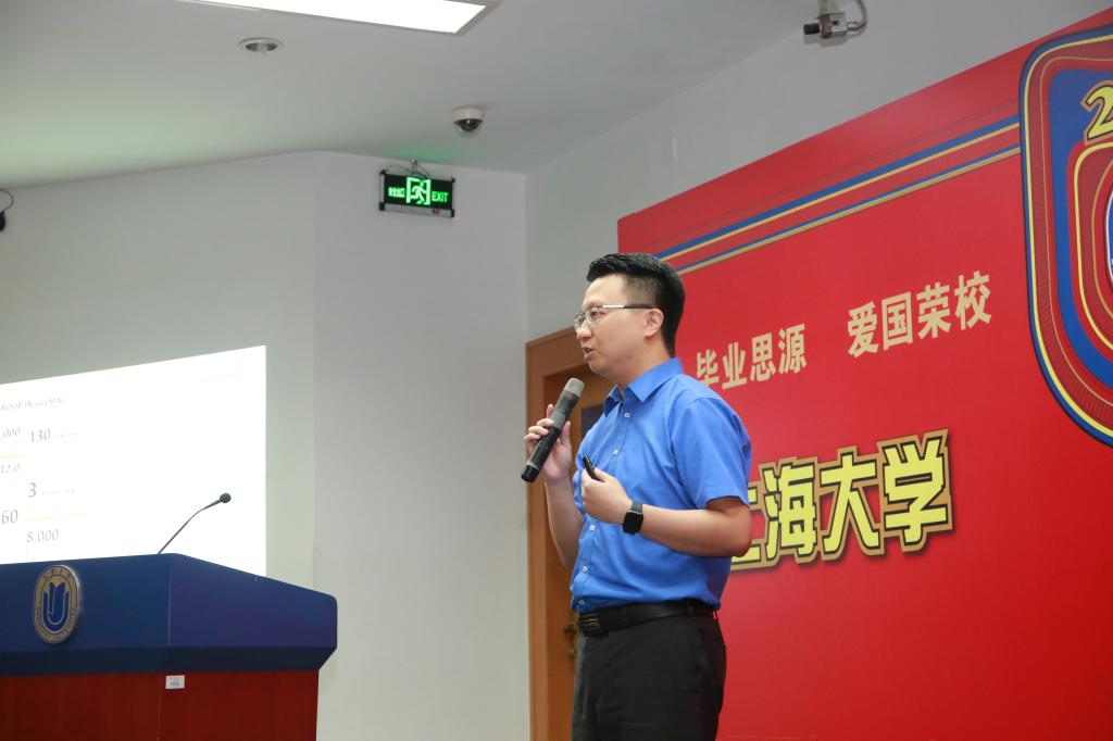 接着,上海建设路桥机械设备有限公司研发总监王翀翔为站在公司和社会分界线上的毕业生做了分享。他从四个角度阐释了职业发展所需要的能力,即专业技能、语言能力、逻辑思维能力和领导力。王翀翔还谈及自己在中欧学习的经验,高度肯定了中欧的工程师培养模式的优势;回顾自己8年的工作经历,一路走来,努力与幸运相伴!最后他说,机会永远留给有准备的人,激发大家走入社会的自信和终身学习的动力。