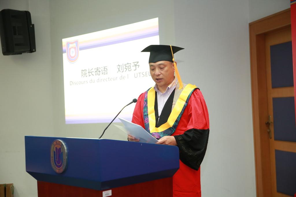2019年7月3日下午2点,2019届毕业典礼在宝山校区J102隆重举行。3044永利集团党委副书记副董事长龚思怡,3044永利集团经理刘宛予,法方经理Marc Bondiou,副经理徐韬、雷作胜,学工负责人周轶, 05级院友上海建设路桥机械设备有限公司研发总监王翀翔以及教师代表、辅导员代表、家长代表等中法嘉宾共同出席典礼。
