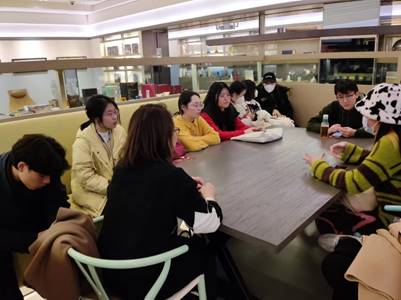 展览结束后,我们还有幸邀请到17级的优秀员工郭瑞琳跟学弟学妹们进行了面对面的分享和交流。郭瑞琳学姐从自己的学习成长经历出发,回答了同学们对于Ut合作公司和专业应该如何选择的困惑,打消了同学们对于出国后即将遇到的语言障碍的恐惧,并对学好法方专业课给出了宝贵建议。