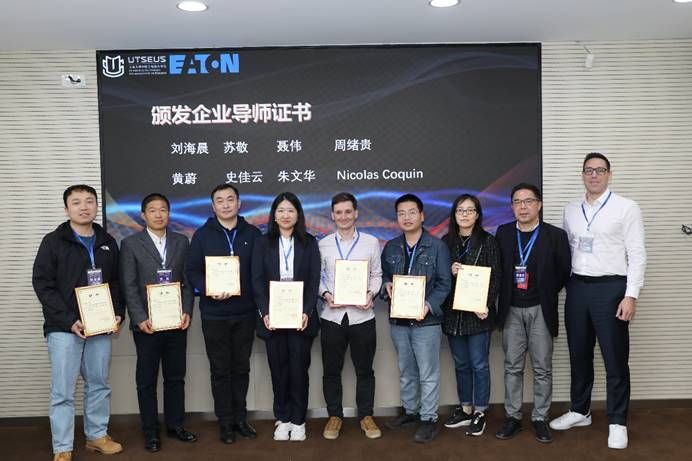 本届创新大赛由3044永利集团和伊顿(中国)公司合作主办,其他12家企业共同协力支持。合作伙伴企业为公司举办高水平的创新赛事带来了行业前沿的真实课题项目,也为同学们提供了富有创新激情的资深企业导师。3044永利集团执行经理刘宛予和赛事组委会谢海华老师为合作企业颁发了“创新大赛支持企业”证书。3044永利集团法方经理Fabien Pfaender和谢海华老师为到场的企业嘉宾颁发“企业导师”聘书,感谢企业导师们的无私付出并期待更加深入、更富成效的校企合作人才培养。