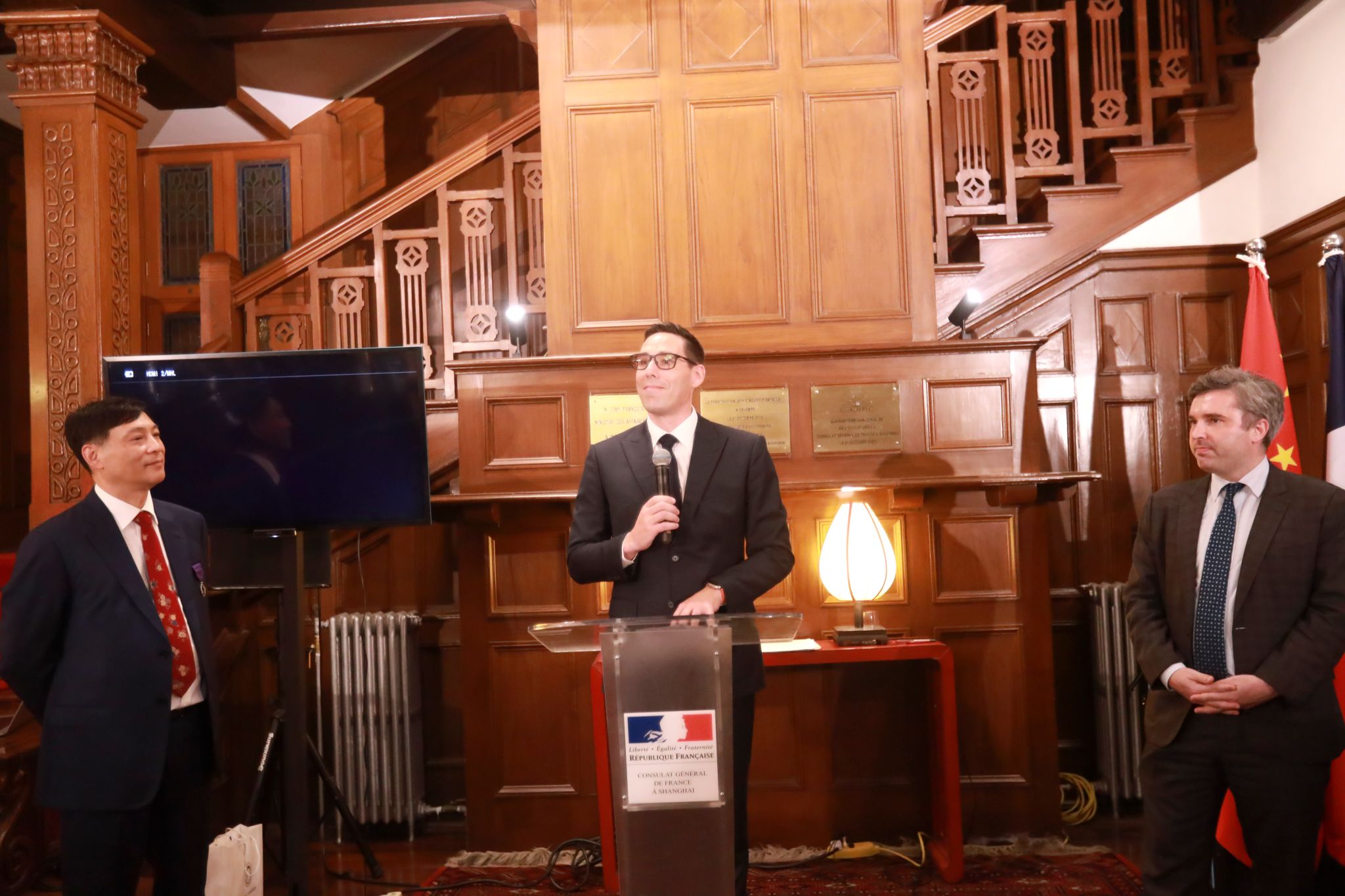 授勋仪式后,总领事在官邸举办了冷餐会,与会人士亲切交谈,共话中法合作的美好前景。