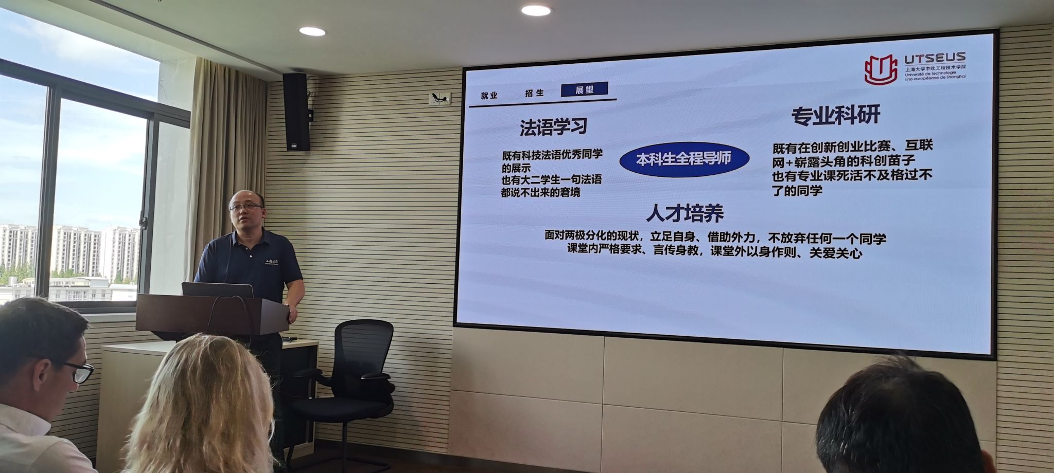 副书记周轶老师还对公司本科生就业和招生的情况进行了简要的分析,基于公司的人才培养的现状,他从全程导师工作的角度提出了要求与期望。法方经理Fabien PFAENDER对公司CTI认证工作进展进行了介绍,他认为公司在法语教学改革、企业关系、科研创新等方面有大量的基础工作要做,通过这个认证,我们将为员工提供更为优质的教育与服务。