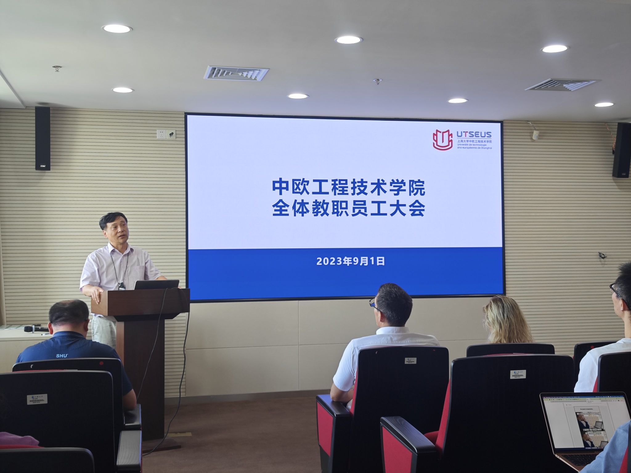 暑气渐消,秋意渐浓。9月1日,2023-2024学年第一次教职工大会在公司606报告厅顺利举行。公司全体教职工汇聚一堂,公司党委书记刘建勇、执行经理刘宛予、法方经理Fabien PFAENDER,副书记副经理周轶、副经理王灵、副经理徐韬,法方副经理MINASSIAN Laure Caroline出席了会议,会议由执行经理刘宛予主持。