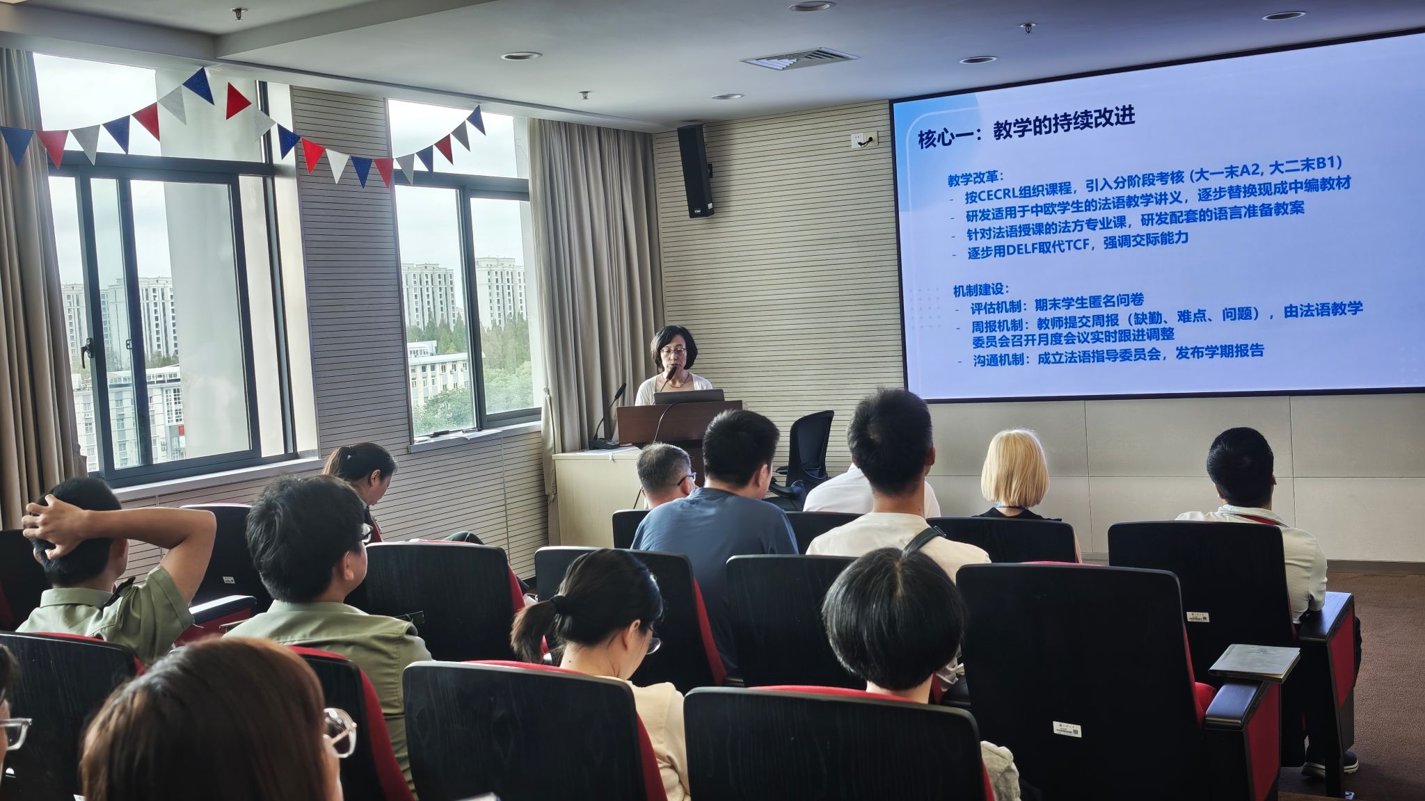 法语教研室副主任时利和为全体老师详解了公司法语教学新战略路线。战略围绕四大核心进行,即聚焦教学过程与员工反馈、聚焦教师能力、聚焦系统与标准、聚焦规划与执行,以达成提高法语教学的质量、效率及清晰度,打造严谨、连贯、可认证的高质量法语教学体系。