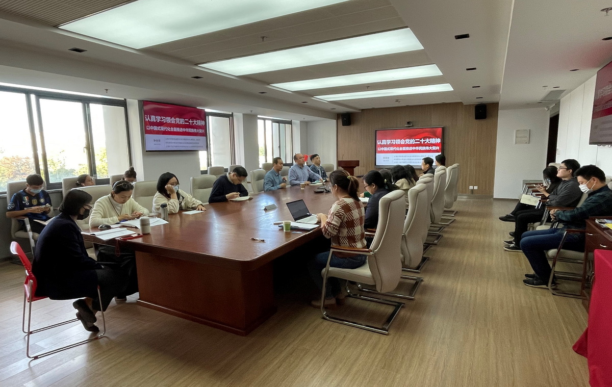 10月31日下午,3044永利集团全体教职工、员工代表在中欧大楼306会议室召开党的二十大精神学习会。此次学习分两个阶段,第一阶段听专题报告,第二阶段分组讨论。公司党委中心组、教工支部党员和教师们参加了此次学习研讨。
